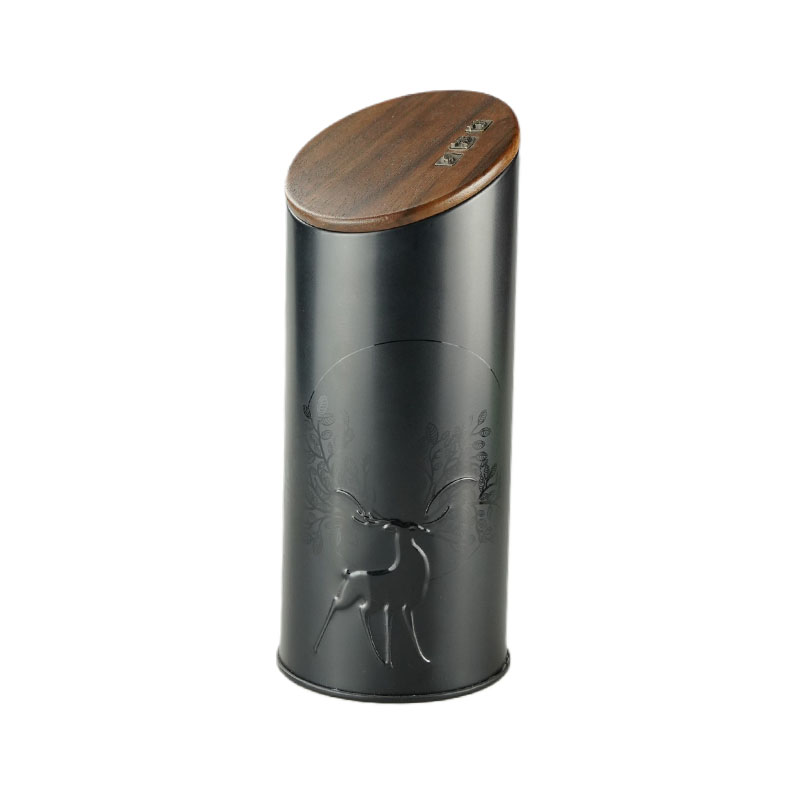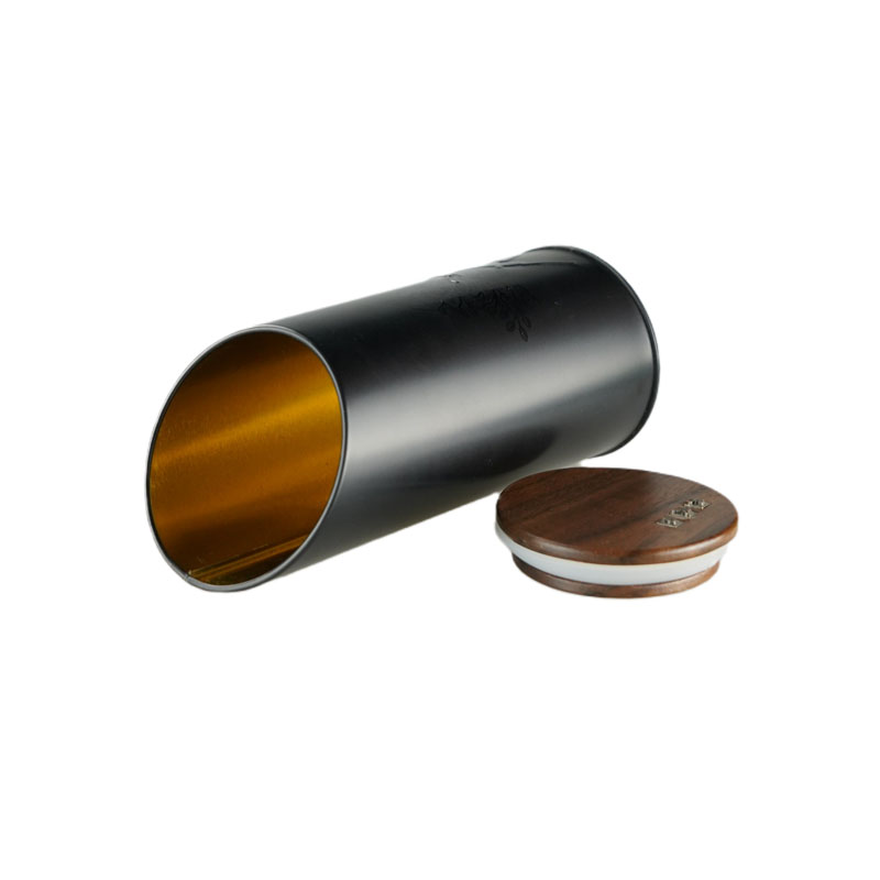 木蓋圓柱形茶葉鐵盒