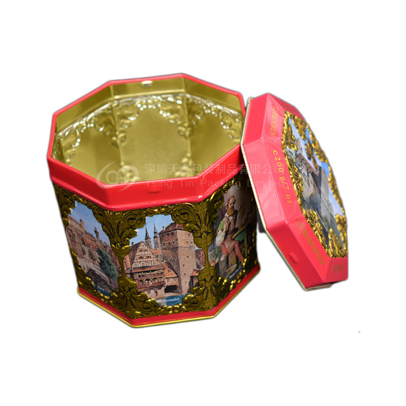 八邊形復古茶葉鐵盒